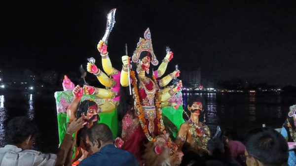 শারদীয় দুর্গোৎসবের পাঁচ দিনের আনুষ্ঠানিকতা শেষে আজ বৃহস্পতিবার বিজয়া দশমীতে প্রতিমা বিসর্জনের মধ্য দিয়ে শেষ হলো সনাতন ধর্মাবলম্বীদের প্রধান ধর্মীয় উৎসব দুর্গাপূজা। ঢাকের বেজে ওঠা ধ্বনি স্তিমিত হলেও শহরময় ভেসে বেড়িয়েছে বিদায় ও আনন্দের মিশ্র আবেগ। সকাল থেকে রাত গভীর .